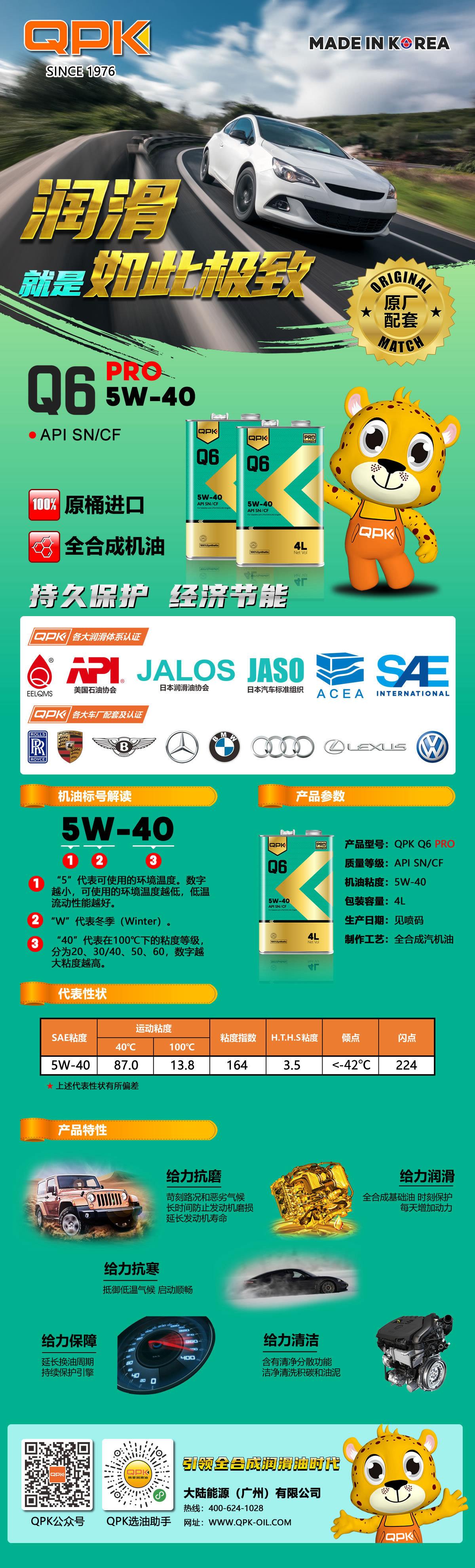 QPK Q6 PRO 5W-40配合了最新清洁分散剂,可有效去除发动机内部灰尘和沉淀物